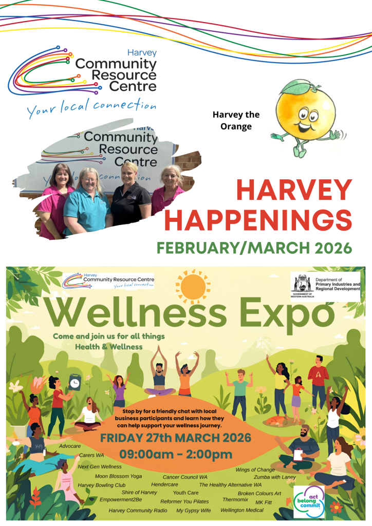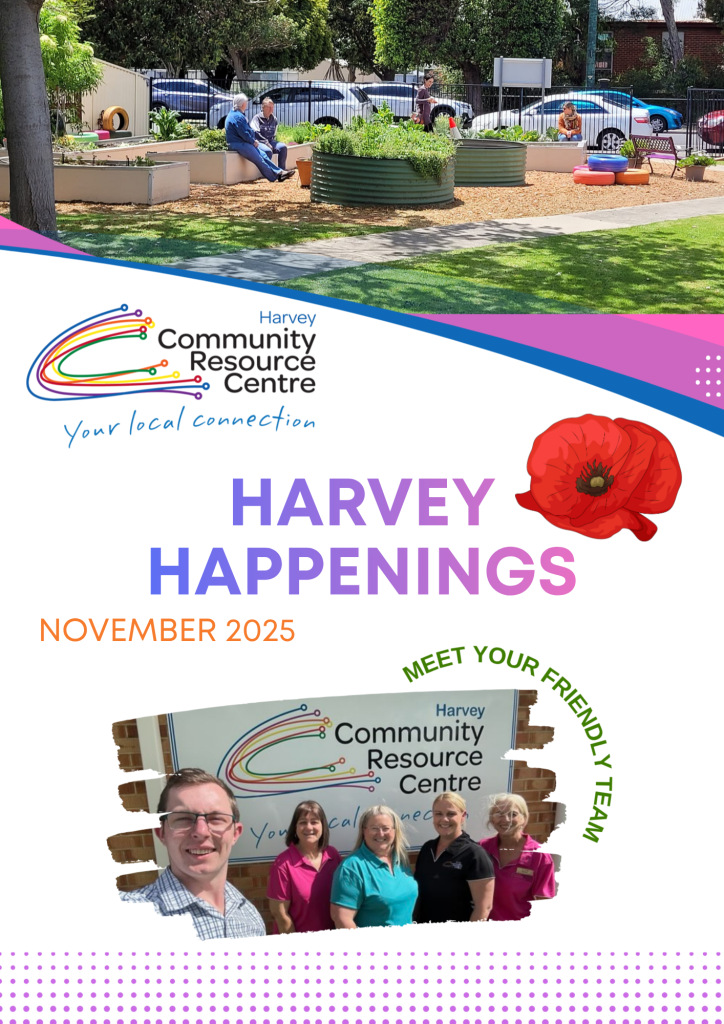 Keep up-to-date through the monthly newsletter, the ‘Harvey Happenings’, distributed widely within the community.